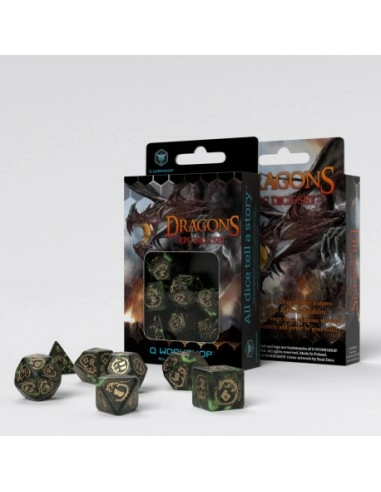 Découvrez Set de dés dragons – vert bouteille & or (7) sur Référence Gaming.