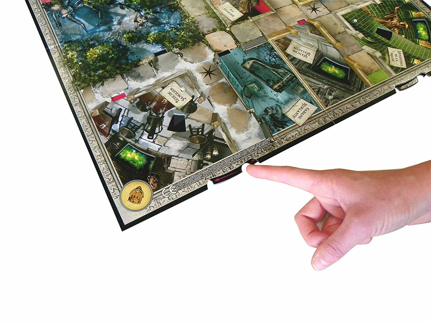 Un étudiant a brusquement disparu. Sous les traits d’Harry, Ron, Hermione, Ginny, Luna ou Neville, vous devez découvrir qui est responsable de sa disparition, quel objet a été utilisé et où cet étudiant a été enlevé.Est-ce Genrir Greyback avec un Collier maudit dans la Forêt interdite ? Utilisez la poudre de cheminette pour vous déplacer de lieu en lieu par le réseau de cheminées magiques… Mais attention à ne pas rencontrer les forces du mal ! Lorsque vous avez rassemblé suffisamment d’indices et que vous êtes sûr de connaître la solution au mystère, rendez-vous au Terrier pour porter l’accusation finale et remporter la partie !La boîte de jeu comprend :1 plateau de jeu6 cartes d’identité29 cartes aide32 cartes du mal21 cartes mystère1 carnet de détective40 jetons poudre de cheminette6 jetons suspect6 jetons objet1 étui confidentiel 1 dé vert1 dé noir1 feuille d’autocollants1 règle du jeu