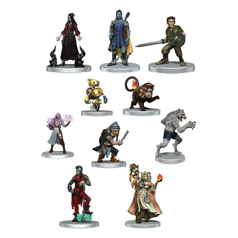 Pack de 10 miniatures prépaintes pour le jeu de rôle.Contenu :*- Fearne Calloway- Little Mister- Imogen Temult- Orym, of the Air Ashari- Dorian Storm- Chetney Pock O’Pea- Werewolf Chetney – Laudna- Fresh Cut Grass- Ashton Greymoore*Sous réserve de modifications